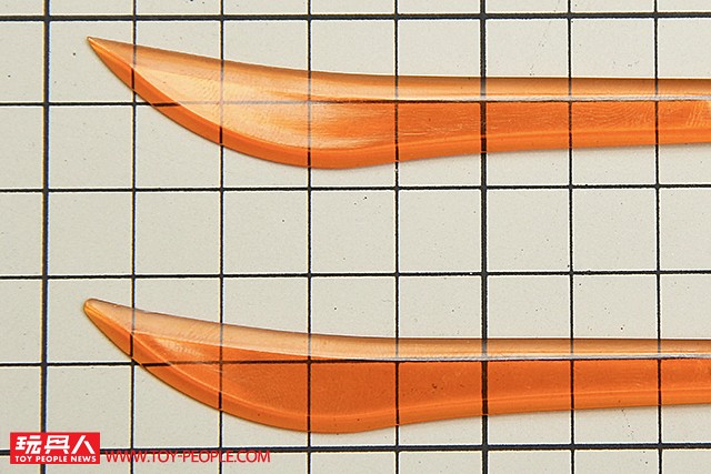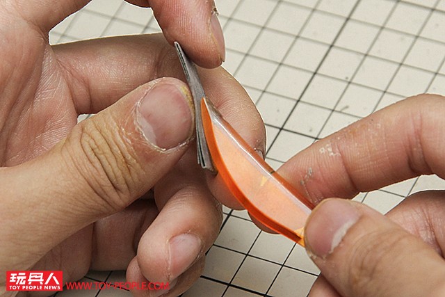 ▼ 由於電熱刀為透明零件,如果使用砂紙就會磨霧,後續要使用研磨膏進行拋光,在這邊我們只將刀刃的上下邊線進行研磨,將刀尖修整銳利。