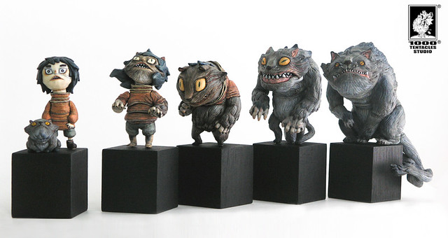 這次的「貓女」作品預計在全球限量販售約50套,一套共有5個角色人物,是將小女孩慢慢轉變成貓女的模樣逐次的呈現出來5個角色人物高度约有9.5~12.5公分,另外加上有 木頭材質的底座是6.5 x 6.5公分,每件作品都是1000Tentacles 工作室設計師們親手塗裝製作,以保持作品上色的水準,目前已經開放預購了,預計於明年2017秋季發貨,喜愛1000Tentacles創作團隊可以前往下方他們的官方臉書,或是台灣的"玩老玩具"也有販售他們的精彩作品歐!