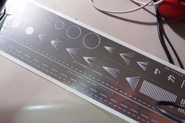 這次在甲板紋路的噴塗上我選用海魂出產的空母專用紋路金屬遮蓋,上面有個是空母用的紋路,就不需要像我之前製作赤城時那樣慢慢去切膠帶了