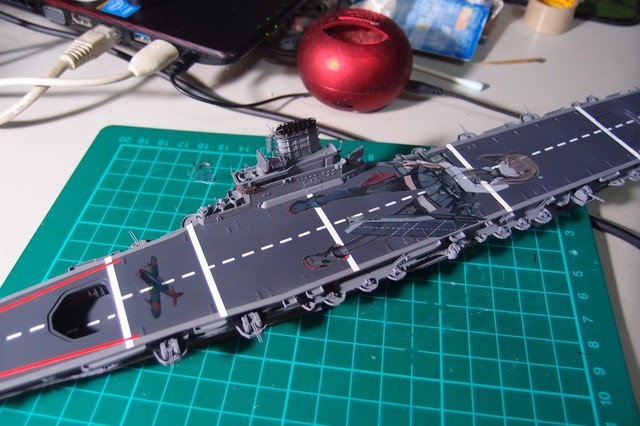 最後把艦載機固定在甲板上後終於可以算是完工了~~
