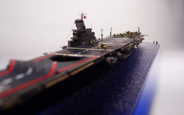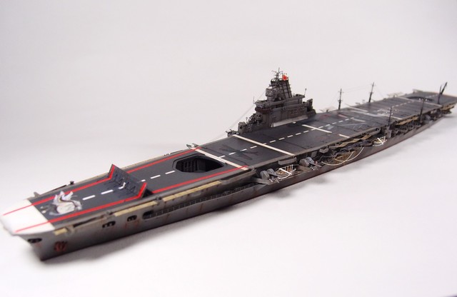 這架大鳳航空母艦可說是日本海軍中最為不幸的空母,僅僅在初次上陣時就遭受到一枚魚雷擊中而導致內部油管破裂造成爆炸沉沒,在考據的方面也沒有太多資料可以提供參考,所以最後在配色細節上可能會跟史實有些差距