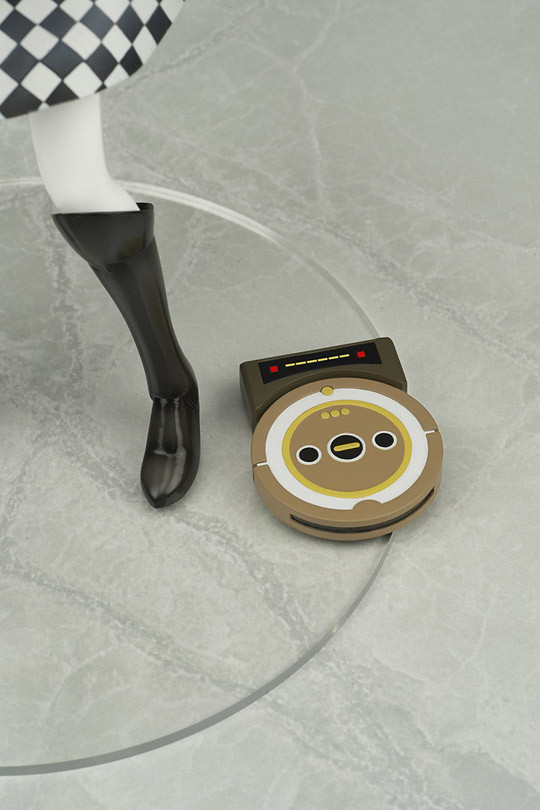 在黑、白兩個版本中,單色小姐除了明顯的衣服顏色差異外,臉上的表情也有所不同,黑版是略顯疑惑的神情,白版則是開朗的微笑。整體造型以動畫主視覺圖為基礎製作,完整重現了原作中的角色神情與服裝。另外也附上了單色小姐最重要的家人,清潔機器人「小露」,小露內部藏有磁鐵,可吸附於底座上。