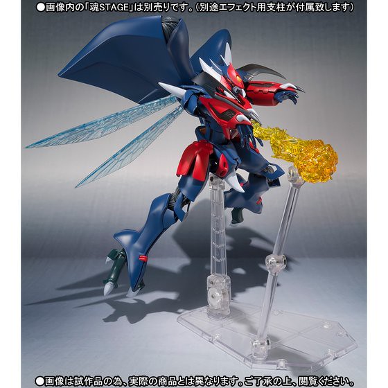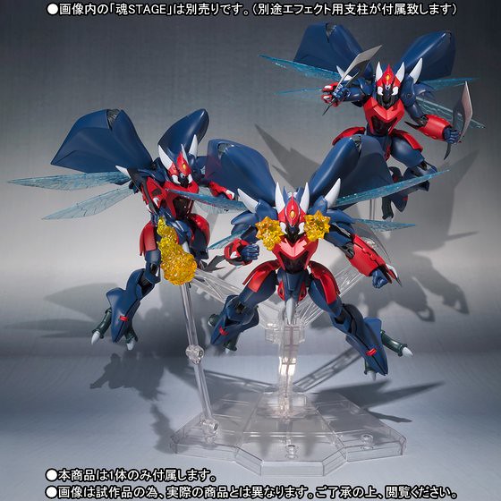 「紅色三騎士」在故事設定裡面是"克之國(クの国)的戰士",在富野老師的《機動戰士鋼彈》動畫作品裡面也有類似以三個小組的『黑色三連星』設定,紅色三騎士的作戰方式也與黑色三連星相似,使用排成一列衝向敵人的「三連戰法」,在機體上胸口及飛翼部分使用透明材質來表現,這次可動作品附有專用支架(エフェクト用支柱),就可再現故事中傳説的「三倍」トリプラー 發射的特效配件等等,預計於魂web線上商店於2016年8月4日開始接受訂購,對《聖戰士丹拜因》動畫有興趣的玩具人可以參考一下歐!