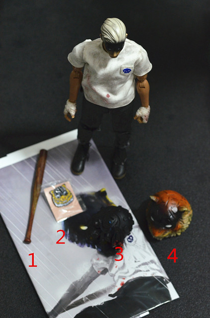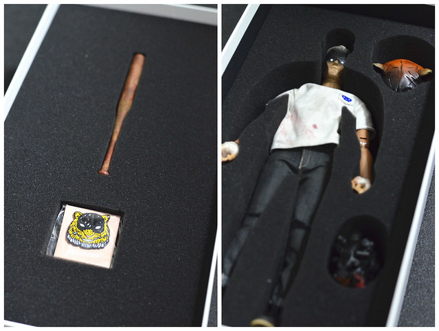 ▲除了海報外,附送四樣東西,棒球棒、徽章、機器頭、虎頭。