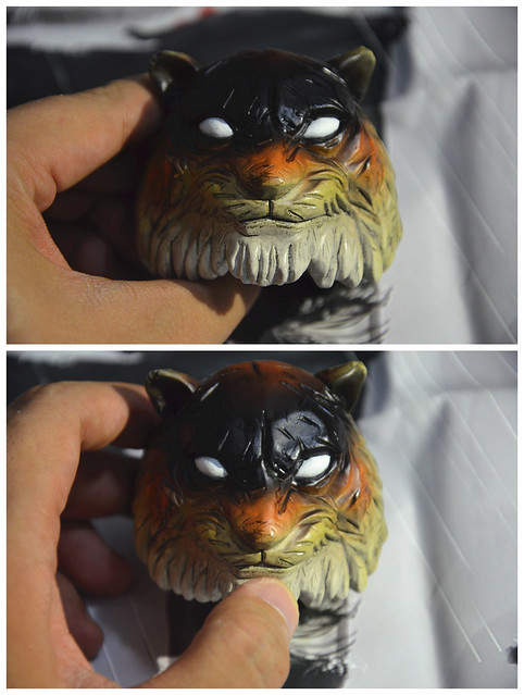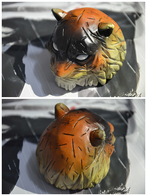 ▲虎頭,樹脂件,額頭周圈黑色與白色的眼睛,營造出更加黑暗的效果。算是自帶光影特效的設計亮點。這也是吸引我購買的原因之一。虎頭周身刻畫很好,風格更傾向潮流一點。