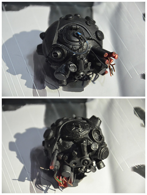 ▲機器頭,也是樹脂件,比較重手,金屬的塗裝配上做舊的風格,讓人眼前一亮。尤其是外露的點線,粗細的搭配以及淩亂的分佈,都比較自然。