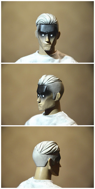 ▲頭雕,和虎頭的塗裝風格一樣,額頭周圈黑色,眼睛白色,自帶光影效果,面部雖然沒有複雜的設計,但是就是帥。頭雕的材質也是樹脂,比較重,所以會導致關節承受不了頭部的重量,還好,站立姿勢的狀態不會有太大影響。