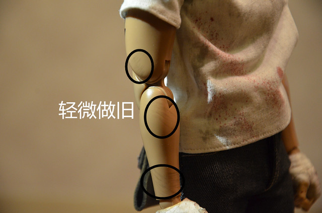 ▲素體手臂上,有進行輕微的做舊,幹掃了一些塗裝,不過不是特別明顯,如果素體做舊稍微重一點,比如加入一些濺血效果,應該會更好。