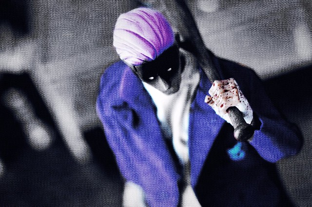 ▲主體方點陣圖,人物頭雕以及虎頭的不同展示,白色的T搭配做舊牛仔褲、靴子,非常潮流。替換上虎頭,更是不一樣的風格。