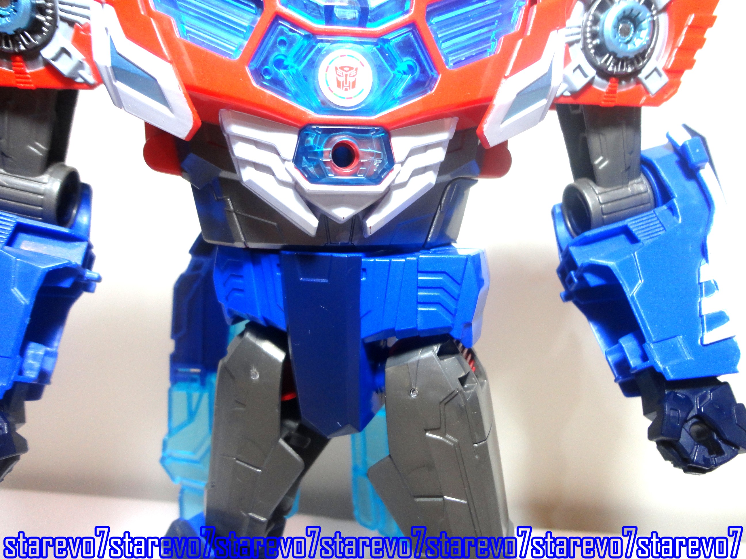 胸部下方有個六角形中間有個插孔的藍色透明件...這個按下去後...就有聲效出來...胸部也有燈光效果(這次TAV-50的聲光效果不多...只有幾個...不像TAV-21有兩百種)