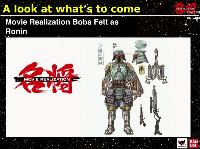 BANDAI於2014年的東京玩具展正式發佈了一個令人振奮的新作消息,名為『名將MOVIE REALIZATION』。以Movie Realization為名,並且以鬼才大師『竹谷隆之』設計、『谷口順一』負責製作原型,將經典科幻電影『星際大戰』的角色以日本戰國時代的武士融合加以設計。