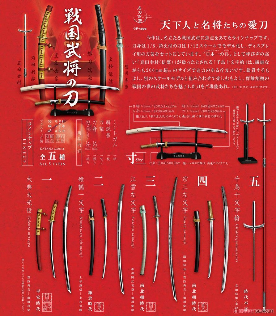 預計推出約有五種類的戰國武將的刀作品可以收集: