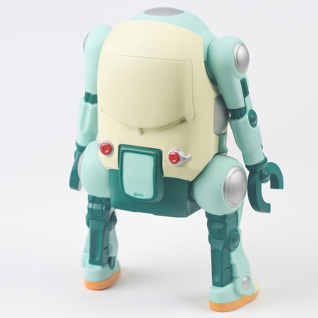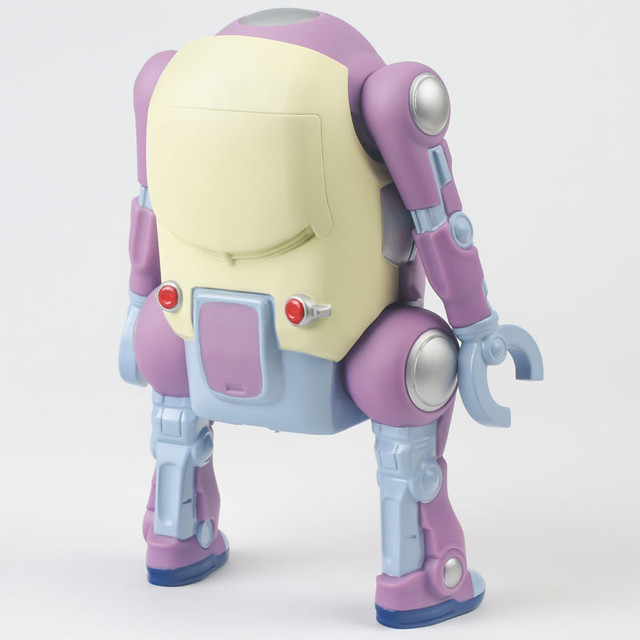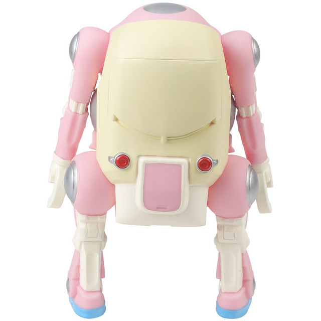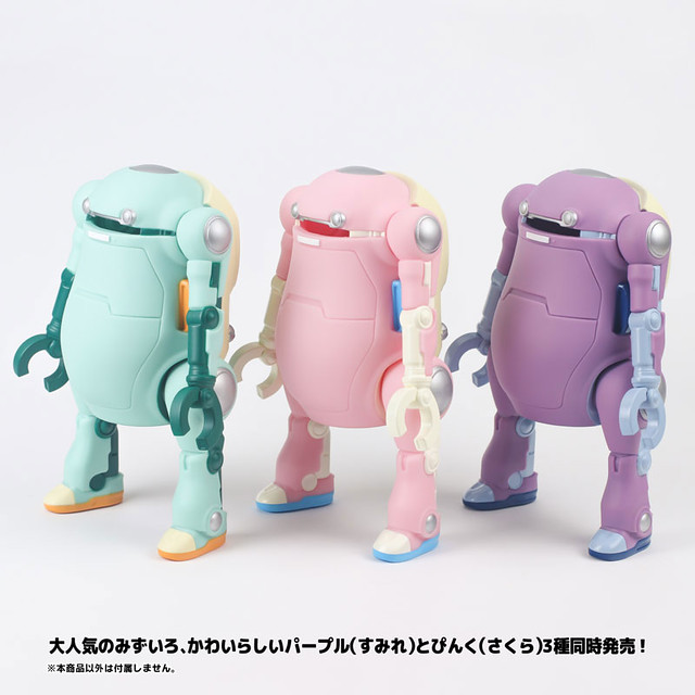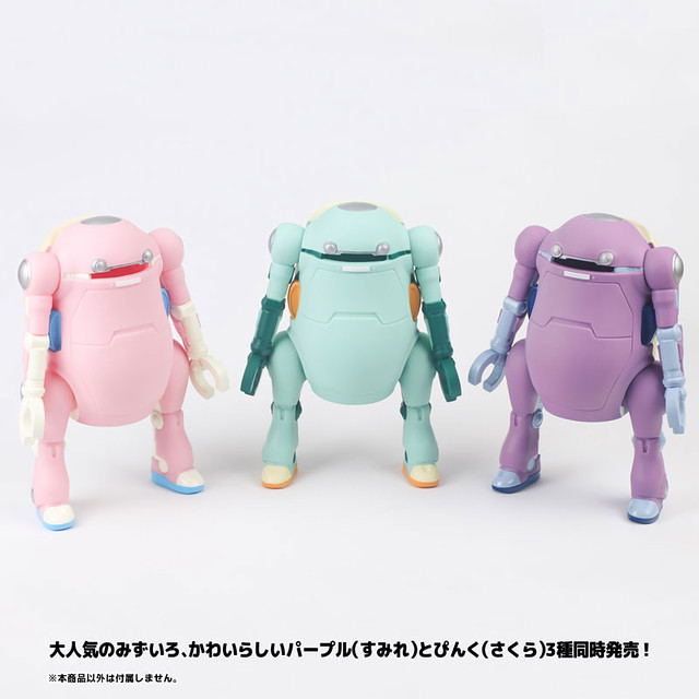 並且首波預計先推出淺藍みずいろ、粉紅さくら和紫色すみれ等等三款不同的配色可以選購,以約1/18比例尺寸來表現出來作品的高度約有15公分左右,身上的機械結構也有仔細地呈現出來,雖然拿在手上少了一些合金材質的重量感,但是和合金材質的WeGo比較起來,因為使用軟膠材質單價也比較低廉一些,提供給喜愛「35機動機器人WeGo」的玩具人參考。