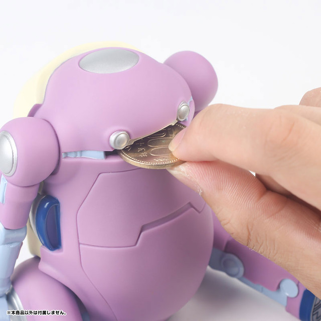 日千值練玩具公司相當受歡迎的「35機動機器人WeGo」可動系列,這次將改變之前所使用的"合金材質",將以「軟膠材質(軟乙烯基)」ソフビ 來製作35機動機器人WeGo,配合材質的使用並且加上"存錢筒"的功能歐!這次不同材質的WeGo一樣在四肢的部位,設計有可以轉動的關節讓它可以呈現出坐下來或是舉手的簡單動作。