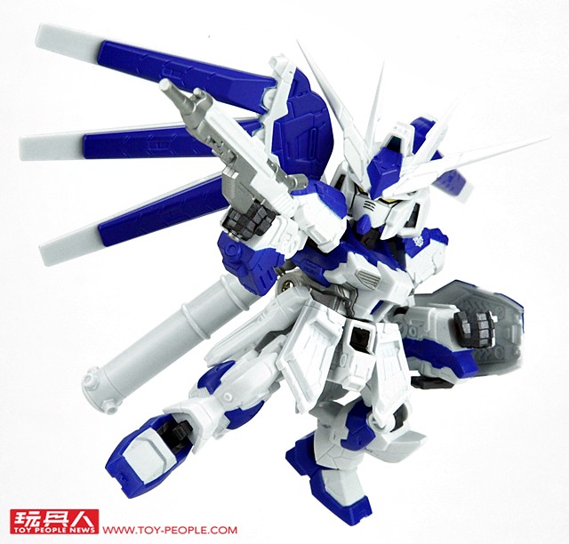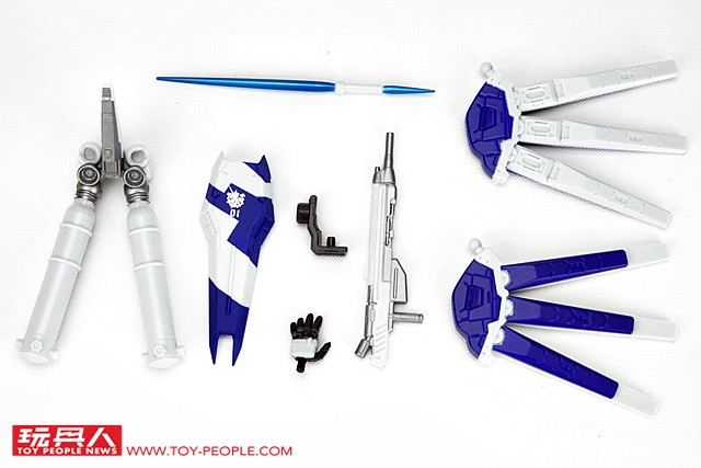 ▼ 配件一覽:追加推進燃料槽(プロペラントタンク)的噴射背包、特製光束軍刀、複合型武裝盾牌、盾牌支架、替換用手掌零件、Hi-ν 鋼彈專用光束步槍以及6發翼狀感應砲。
