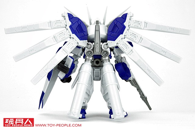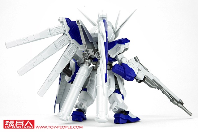 ▼ 背部的翼狀感應砲雖然不能一個個拆卸下來,不過設計有可動關節,能夠自由調整飛翼的角度,使得各式各樣的姿態能夠更加具有動感。 除此之外,噴射背包與推進燃料槽的材質也特別調整了材質,避免整體造型的重心向後傾斜。
