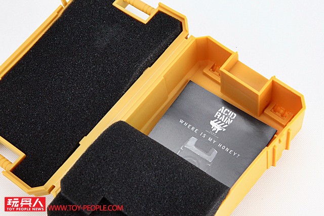 ▼ 這是從今年度開始採用的全新包裝設計,人偶不再是裝在紙盒中,而是使用這種特製的軍事運輸箱造型來收納,軍事氣氛十足! 運輸箱採用的是象徵黑蜂部隊的鮮黃與黑色配色,並且印有黑蜂部隊的標誌,彷彿在警告『這可是菁英護衛團嚴密防守中的資產!』。