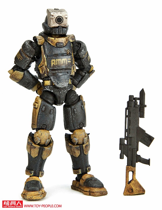 ▼ 接下來就讓我們來看看這次的新兵吧! 人偶採用的是一般的素體,但在外層加上了厚重的裝甲,並附有一把全新設計的輕型機槍。 維持了酸雨戰爭一貫的超高水準舊化塗裝,逼真的質感就像是剛從戰事激烈的前線執行任務回來啊~ 超帥!