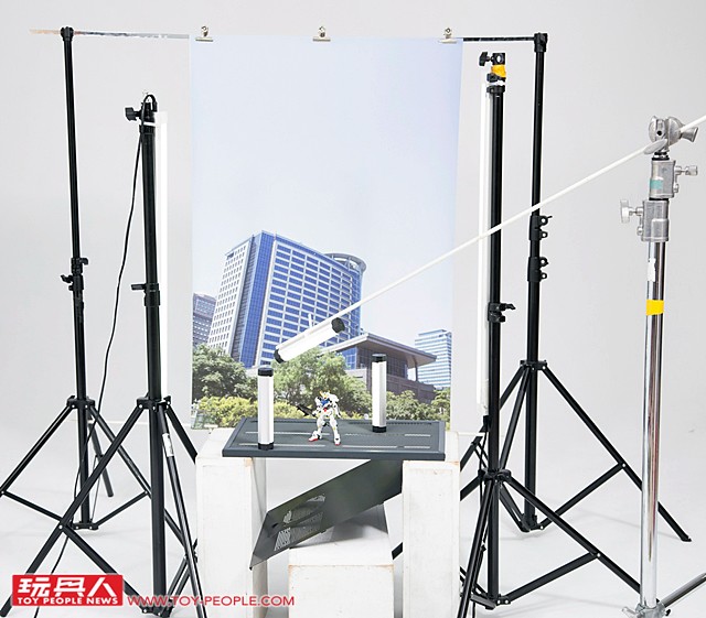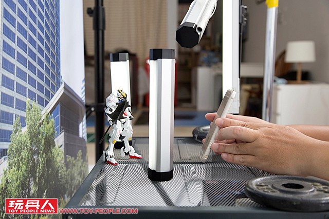 小叮嚀:固定時的粘土不能少。在確認台子放置位置及固定之前,我建議先試拍幾張,因為相機、鋼彈、背景間的距離很重要,距離不一樣,會產生出不同的結果。