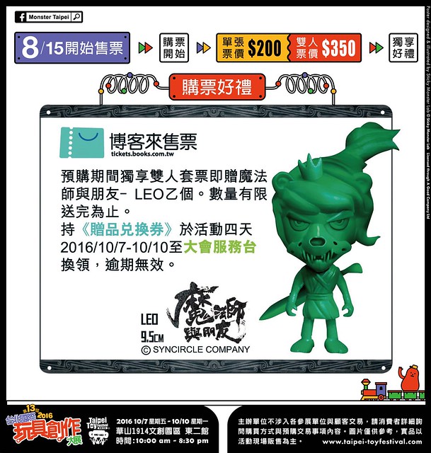 購票資訊:單張票券$200元,預購期間雙人套票$350元。