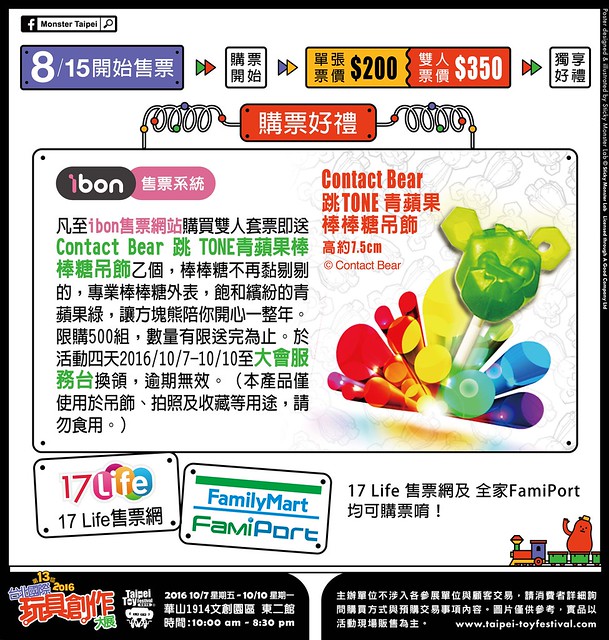 實體門票共有11款設計師經典票款,預購期間(8/15-10/2)於大會指定售票端點可挑選款式!