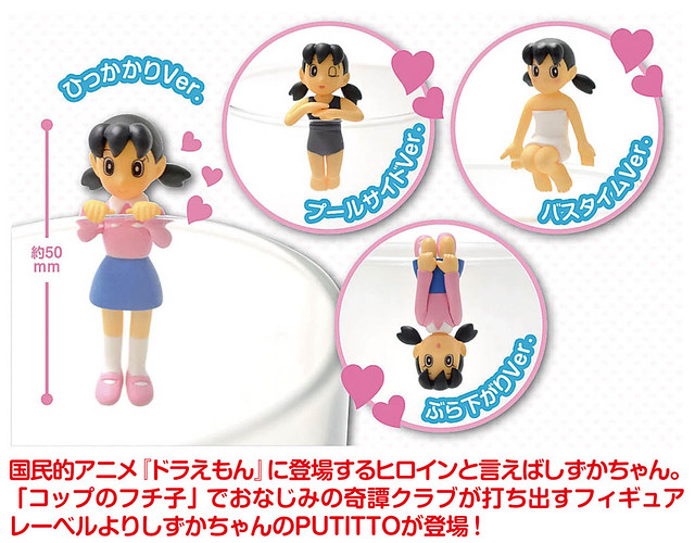 以杯緣子系列玩具暢銷爆紅的玩具廠牌「奇譚俱樂部」,結合各式動漫主題與杯緣玩具設計的「PUTITTO」系列作,這個月將以大人氣動畫《哆啦A夢》ドラえもん裡面的女孩"靜香"來推出「靜香特集」的杯緣盒玩作品しずかちゃんです(名稱暫譯)。