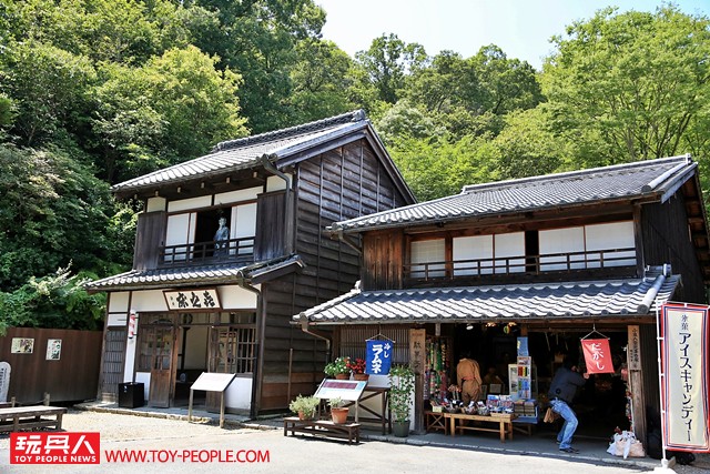 ▼ 園區內經營的小賣店也刻意製作成明治時期商店街的風格~