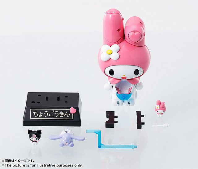 「超合金 美樂蒂」是美樂蒂駕駛的宇宙巡航用機器人,它的外表就是一個巨大化的美樂蒂。耳朵能像本人一樣彎曲,頂端則能發射愛心形狀的「拜託了飛拳」(おねがいパンチ) 。駕駛艙則設置在腹部,只要轉動兔尾巴就能開啟艙門喔!超合金 美樂蒂也能在通常模式與宇宙巡航模式間切換,而且不管哪種模式都能透過在各處設置的滾輪移動!