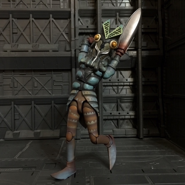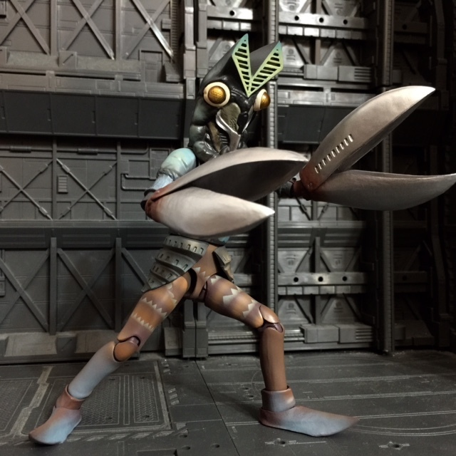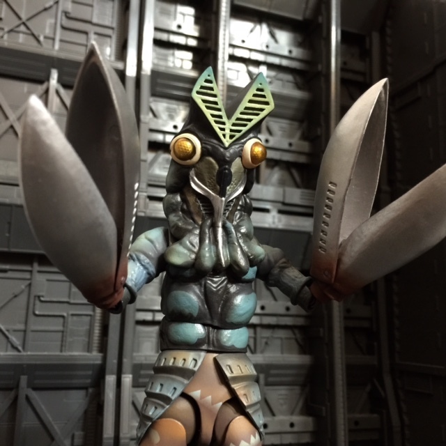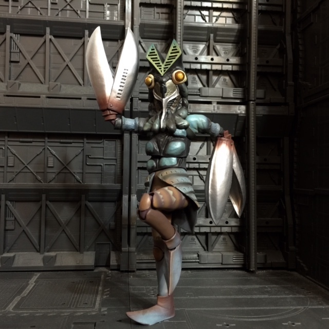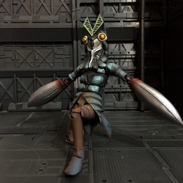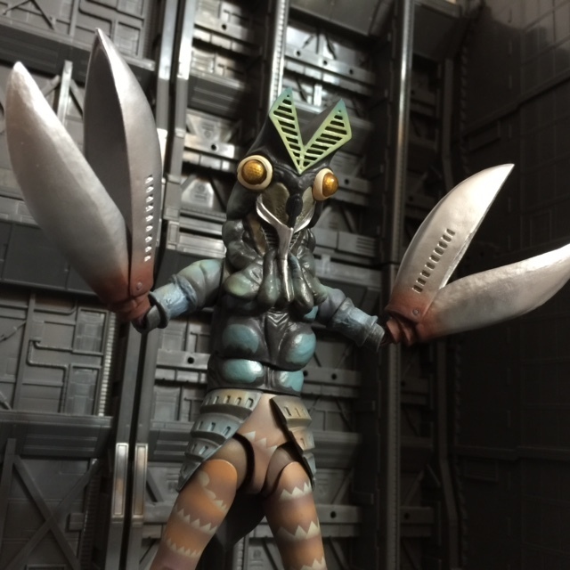 做 為S.H.Figuarts系列《超人力霸王》中的反派第一彈,標榜以嶄新可動關節的規格來製作,更貼近特攝劇當中的姿態,在表現上可說是可圈可點,優點 當然是還原當年劇中的造型,且近年來看得出SHF在角色的塗裝跟還原度有下了番功夫,拆盒後實際在手中把玩的滿足感是有的;而比較可惜的就是標榜的可動部 分以及無任何配件,只能說成也造型敗也造型,頭部造型的高還原但也造就頭部可動幾乎是死的,連基本的頭部轉向都會因下巴而卡死,其餘關節的可動就與一般的 SHF表現差不多,但因鉗子以及造型頭重腳輕始終難以大開大合,與其說可動不佳倒不如說更還原當時劇中皮套演員生硬的表現。