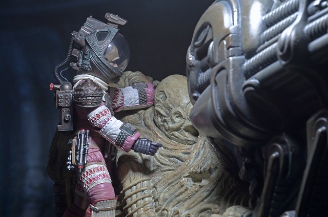 繼2015年2月宣布發行「化石化太空騎師」雕像之後,NECA 也宣布了這具讓異形粉絲們多年來津津樂道的化石巨人、恐怖謎團。「太空騎師」(Space Jockey)又被稱為“駕駛”(The Pilot),是一個在無人知曉的時代,駕駛太空飛船墜毀在LV-426 的「工程師」,他被異形幼蟲「破心者」所殺害,但最後這個殺人怪物的去向無人知悉。