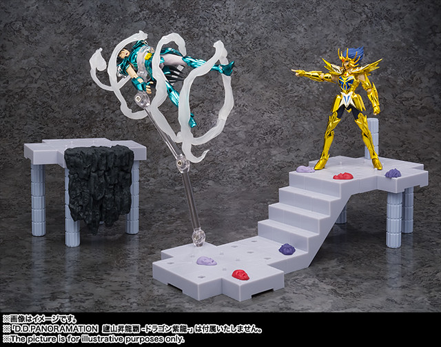 『D.D.PANORAMATION』全名是「Dynamic Diorama Panoramation」意思為“充滿動態的可動場景”,其特色在於使用了約10公分尺寸大小的多處關節可動人偶,再搭配上場景與特效配件,讓玩具人們能夠自由地充分展現原作的各種場景與世界,除了主要登場的五位青銅聖鬪士之外,也同時會推出十分受歡迎的黃道十二宮「黃金聖鬪士」,收齊全部就能堆砌出超壯觀的聖域場景。