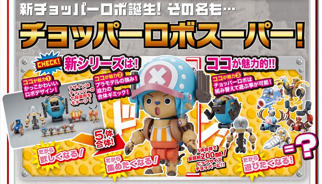 日BANDAI萬代玩具公司的模型部門事業部之前以人氣《航海王》動畫當中超受歡迎的「喬巴」為題材,推出過『喬巴合體機器人』的組裝模型作品,這次將推出"進化版本",之前已經曝光過 「毛皮強化超級1號」和「重力強化超級2號 」了!當然這次公開其他三款「角強化超級3號」ホーンドーザー、「柔力強化超級4號」カンフートレーサー、「脚力強化超級5號」ウォークホッパー(名稱都暫時翻譯)。