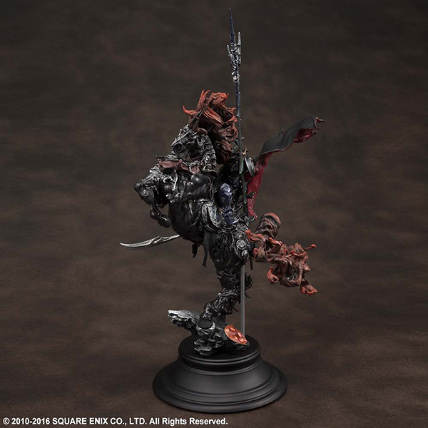 「MasterQuality Figure <闘神奧丁>」如同它的名稱,以超高水準的品質打造,細膩的造型與色彩塗裝帶來比遊戲中的模組還要震撼的魄力!!雕像含臺座全高約29公分,史雷普尼爾雙腳立起,奧丁高舉著長槍,鬃毛與披風隨風揚起,整件作品充滿躍動感並帶來滿滿的王者氣場!另外還附贈了《FINAL FANTASY XIV》遊戲限定道具「演技教本:斬鐵劍」的序號,玩家們千萬不要錯過喔!
