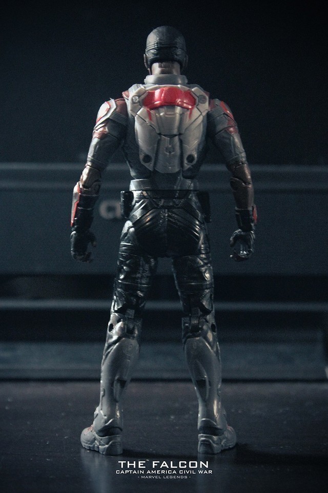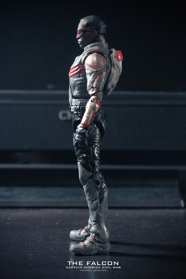 側面圖!可以清楚看到,揹著背包的獵鷹,可以呈現收納翅