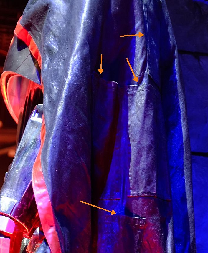 ▼ 在去年的迪士尼博覽會D23 EXPO 上展出了大量的電影拍攝道具,現場拍攝的圖片中就有拍攝到斗篷上四塊大小不一的補丁。