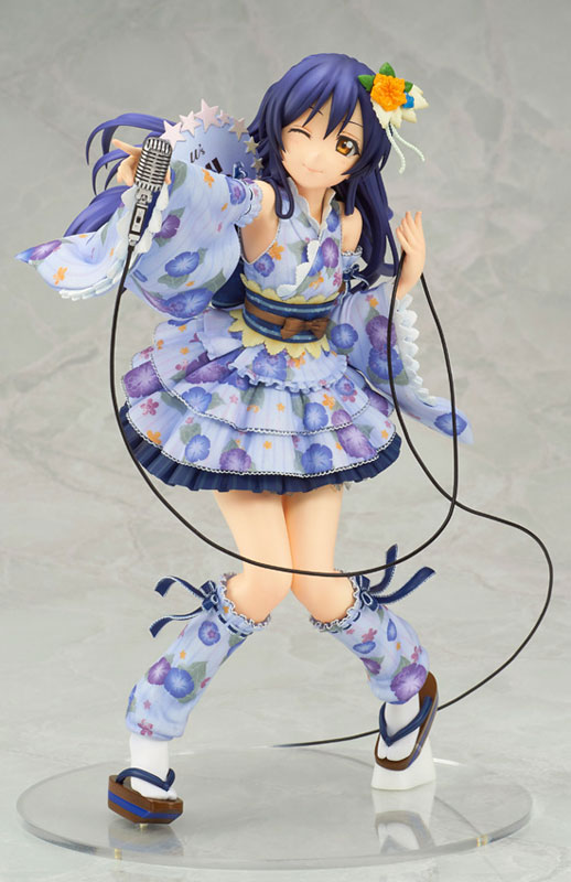 ALTER的「園田海未 1/7 FIGURE」是以《LoveLive! 學園偶像祭》中的卡片「園田海未<9月編 浴衣>」穿著夏季浴衣的造型為基礎製作,動作徹底還原了插圖中的樣子,佈滿牽牛花圖樣的浴衣體化後非常華麗,身上大大小小的配件都處理得很細膩,而海未則露出非常喜悅的笑容。從後方觀看時,髮束、浴衣袖袋、麥克風線等地方都隨空氣揚起,讓畫面十分有躍動感!