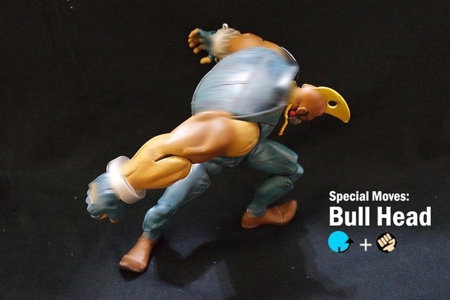 趁對手倒地起身,必殺技Bull Revenger!(快速跳過去摔對手,俗稱鯉魚跳)