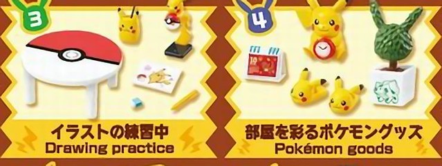 「歡迎來到皮卡丘房間!」是非常精緻的袖珍模型,從早到晚會使用到的家具全都包含在內,而且樣式非常可愛。商品總共有8種類,分別為: