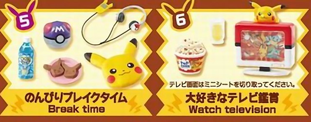 ▼のんびりブレイクタイム(Break time)有座墊、飲料點心、耳機和大師球造型的大師球?下午休息一下,聽個《皮卡丘之歌》吧!大好きなテレビ鑑賞(Watch television)有電視、爆米花、果汁,星期四晚上6點,最新一集的寶可夢動畫要播出了!