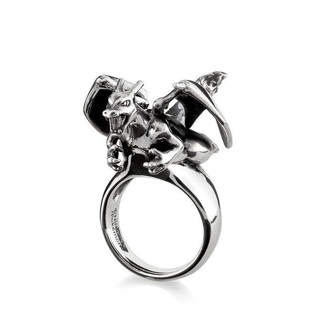 噴火龍是三隻裡面人氣最高的,噴火龍戒指刻畫了噴火龍翱翔在天空的姿態,巨大的翅膀正用力的拍打中,十分有躍動感。尾巴上的火焰正猛烈地燃燒著,嘴巴張大的噴火龍似乎要使出噴射火焰!是魄力滿點的飾品!喜歡火系寶可夢的你不用考慮,帥氣的噴火龍戒指最能襯托出你的熱情!