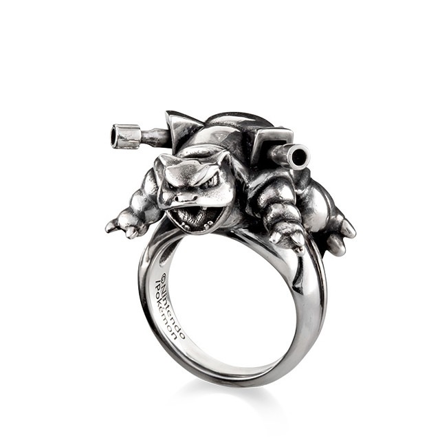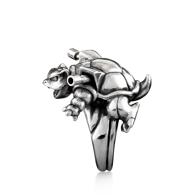 擁有強大防禦力的水箭龜,背上有兩門堅挺的砲管,水箭龜戒指將水箭龜甲殼的厚重感以及手腳細部的特徵都忠實呈現,巨大的身軀伏地,兩門砲管對著前方,準備使用水系的強力招式「水砲」!配合水箭龜吼叫的神情,非常帥氣呀~喜愛水系寶可夢的你,強壯的水箭龜最能代表你的堅強喔!