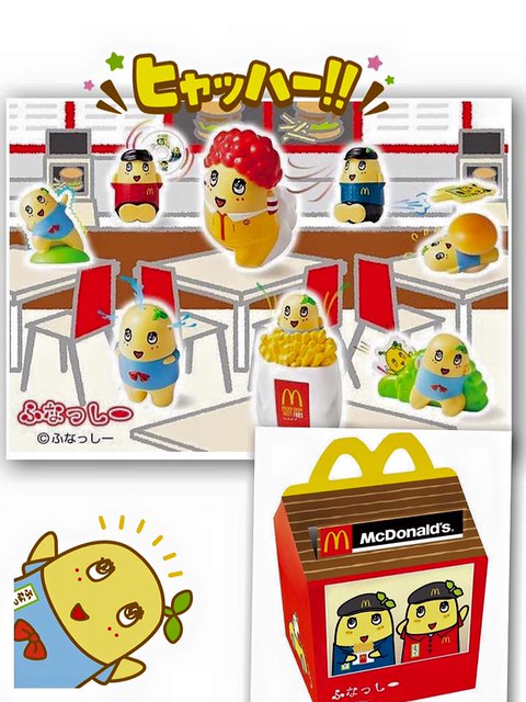 號稱最瘋狂又無拘束的吉祥角色《船梨精》這次將與日本麥當勞,來合作推出期間限定的快樂兒童餐的玩具贈品囉!預計在2016年9月16日於日本的麥當勞限定推出約有八款有趣的兒童餐的玩具,每款都有逗趣的名稱來命名十分俯和有些個性狂亂的船梨精,還把船梨精直接裝扮成經典麥當勞叔叔的模樣,再加上有車輪前進的設計,馬上變成一款「走吧!麥當勞船梨精」,頭髮還會上下移動。