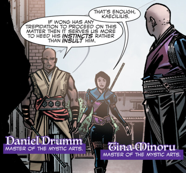 Daniel Drumm,其電影世界觀版本目前只出現在電影前傳漫畫,是協助王抓拿女巫的祕法大師同伴。但在原作正史世界中,他就是另一個魔法大師Doctor Voodoo(巫毒博士)的雙胞胎兄弟,後來死亡變成幽靈,在超自然領域上協助自己的兄弟,或許這名角色在前傳漫畫的出現,會讓奇異博士電影有巫毒博士的相關彩蛋也說不定,畢竟相關角色都出現了。