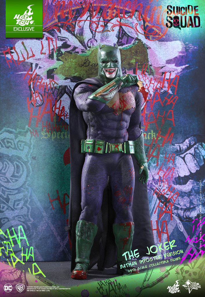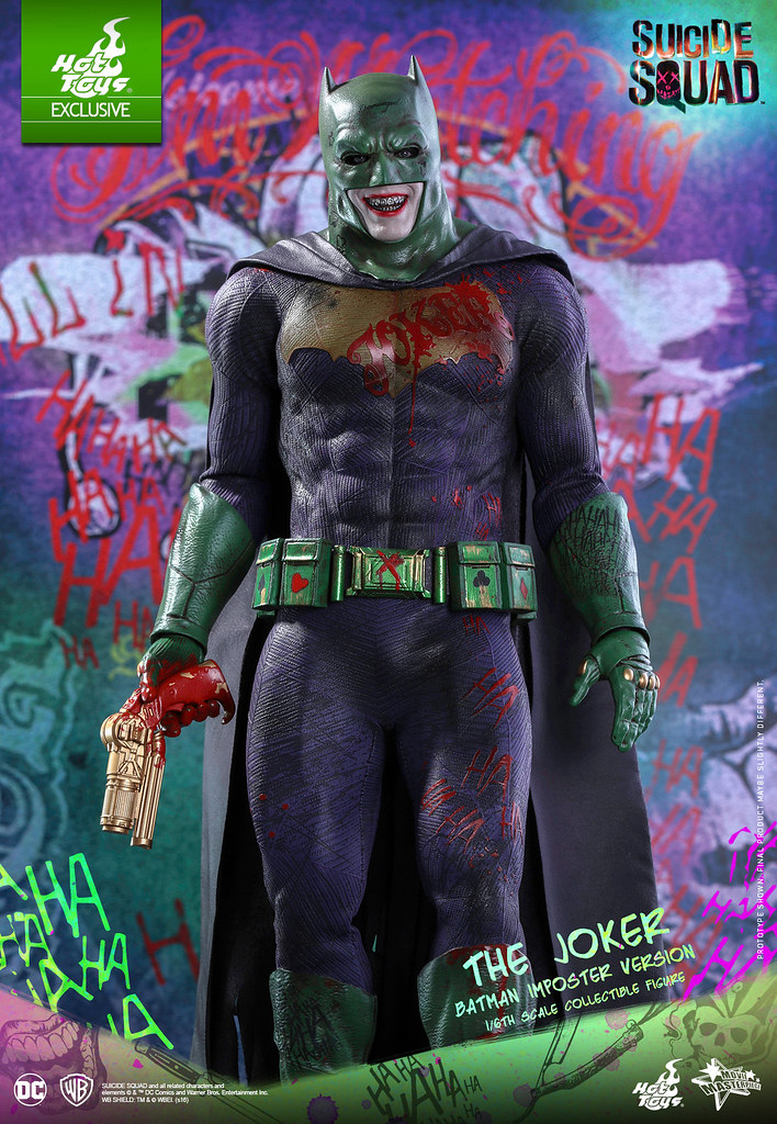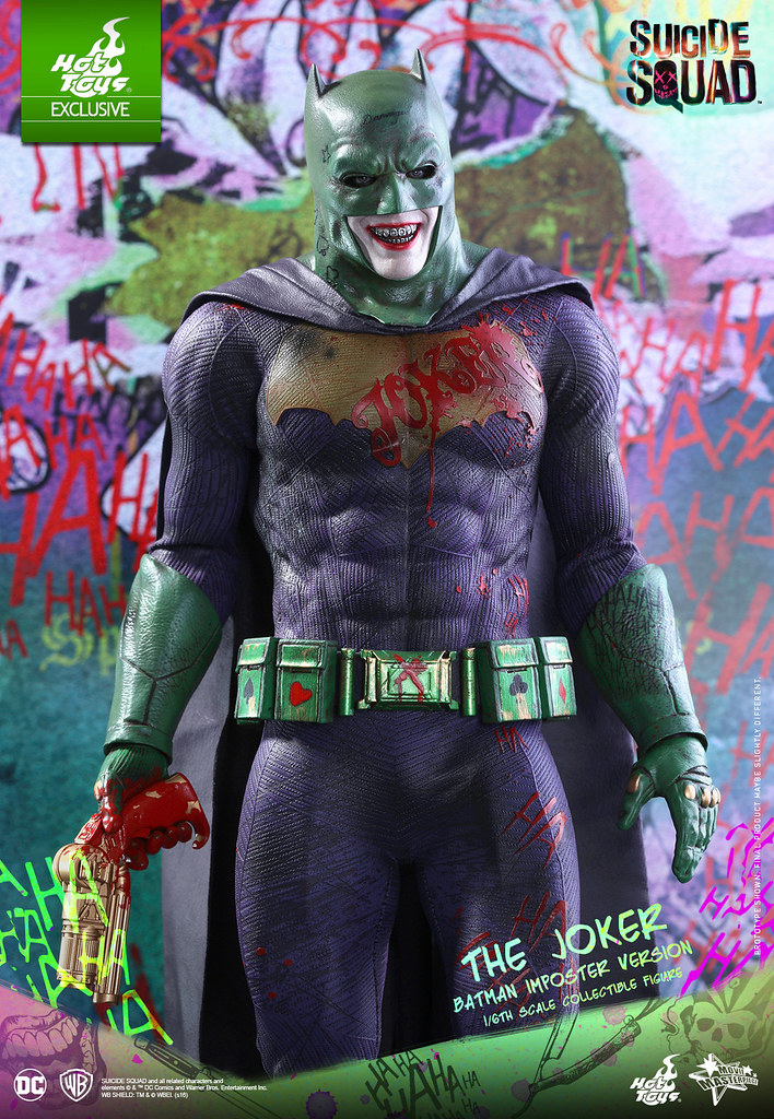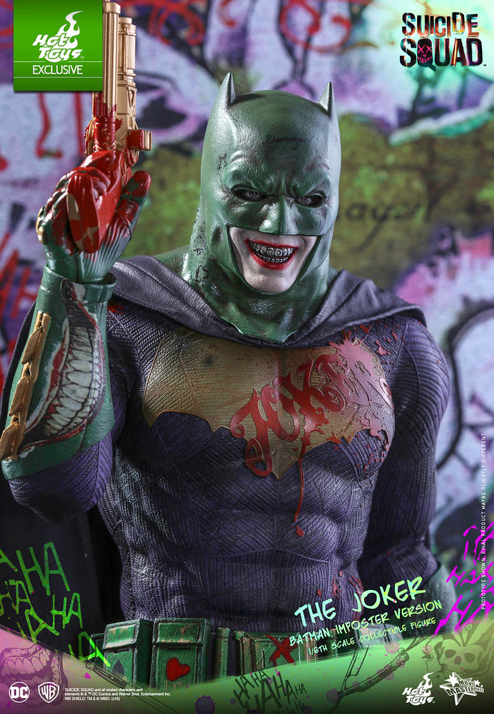 這個全新的角色,是由Hot Toys 的設計師以這次在電影自殺突擊隊中飾演小丑的傑瑞德.雷托(Jared Leto)為發想所創作出來的一個角色,主要的設定是以「小丑」假扮蝙蝠俠所創造出一個全新的造型,綠色、黃色、紫色的配色設定搭配蝙蝠俠的造型以及小丑的臉部造型,喜愛小丑的玩具人絕對不可以錯過啊。