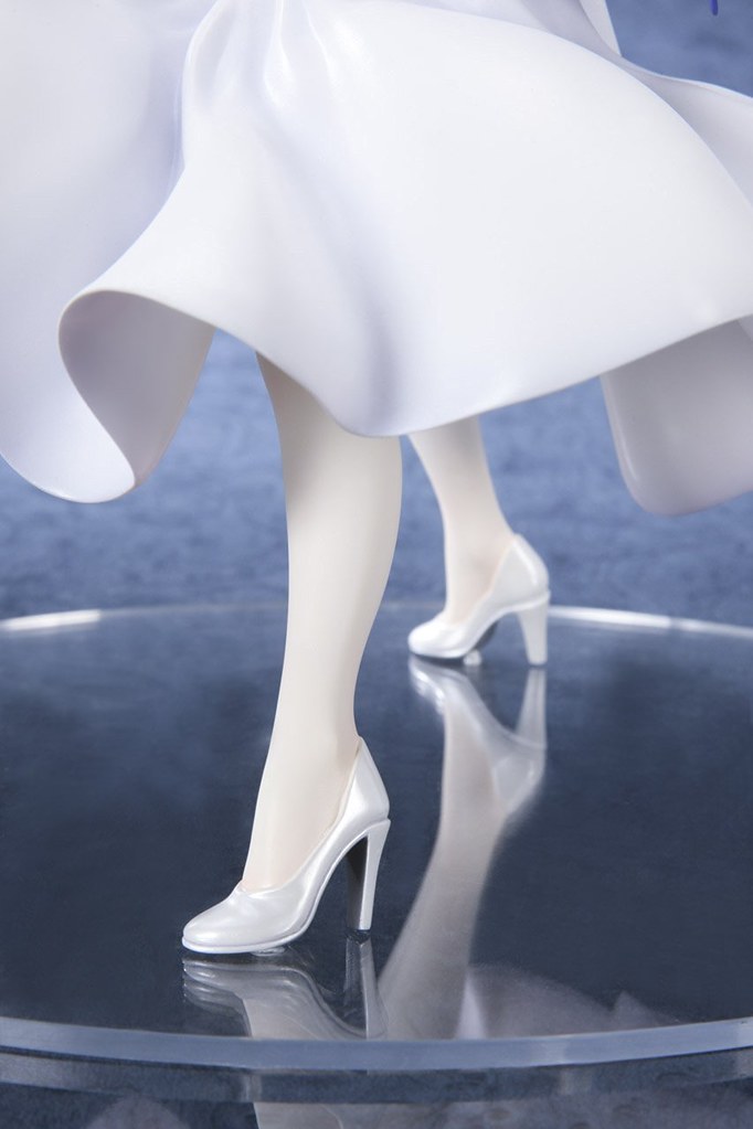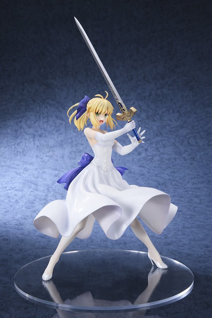 「Saber 白色禮服ver.」是以動畫《Fate/stay night [Unlimited Blade Works]》BD-BOX II的封面造型為基礎製作,身穿純白的華麗禮服,手持約束勝利之劍。雖然不太容易看出,但整套禮服的細節都相當精緻,隨空氣飄動的裙襬讓畫面更加動感。約束勝利之劍以金屬色塗裝,劍身的雕紋也細膩的製作出來。