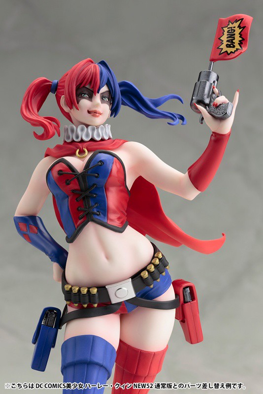 繼日前所推出的DC Comics 美少女系列New 52 版本拿著大木槌的經典性感反派角色小丑女「哈莉.奎茵」之後,日本知名品牌壽屋(KOTOBUKIYA)與知名插畫家山下俊也(山下しゅんや)所合作的「美少女系列」(Bishoujo)又將要推出其最新的限定版本作品:New 52 版本的小丑女「哈莉.奎茵」。