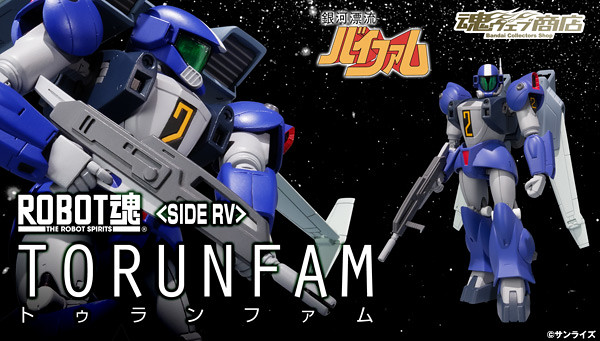 日BANDAI萬代玩具公司的ROBOT魂可動系列以《銀河漂流》動畫為題材推出過「Neofam」紅色機體,這次將在推出「Torunfam」トゥランファム戰鬥機體,作品附有交換用手首左右各3種、武器光束炮(ビームガン)等等多款配件,在劇中所出現的飛行駕駛艙(トゥランファム用複座型ポッド)這次也完整再現。