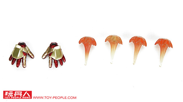 ▼ 配件則是附屬了開掌的手部替換零件,以及四個飛行、射擊特效零件。小編個人非常喜歡這個特效零件,除了能夠為人偶增添更具視覺張力的效果之外,還有一個很棒的設計...