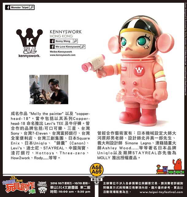 曾經合作藝術家有:日本機械設定大師大河原邦男老師、設計師北井真一郎先生、義大利設計師 Simone Legno、澳籍插畫大師AshleyiWood.....等等著名日本品牌 Uniqlo以及潮牌STAYREAL亦先後為 MOLLY 推出授權產品。