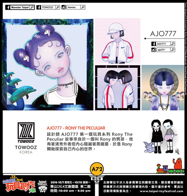 設計師 AJO777 第一個玩具系列 Rony The Peculiar 故事來自於一個叫 Rony 的男孩,他有著清秀外表但內心隱藏著黑暗面,於是 Rony開始探索自己內心的世界。
